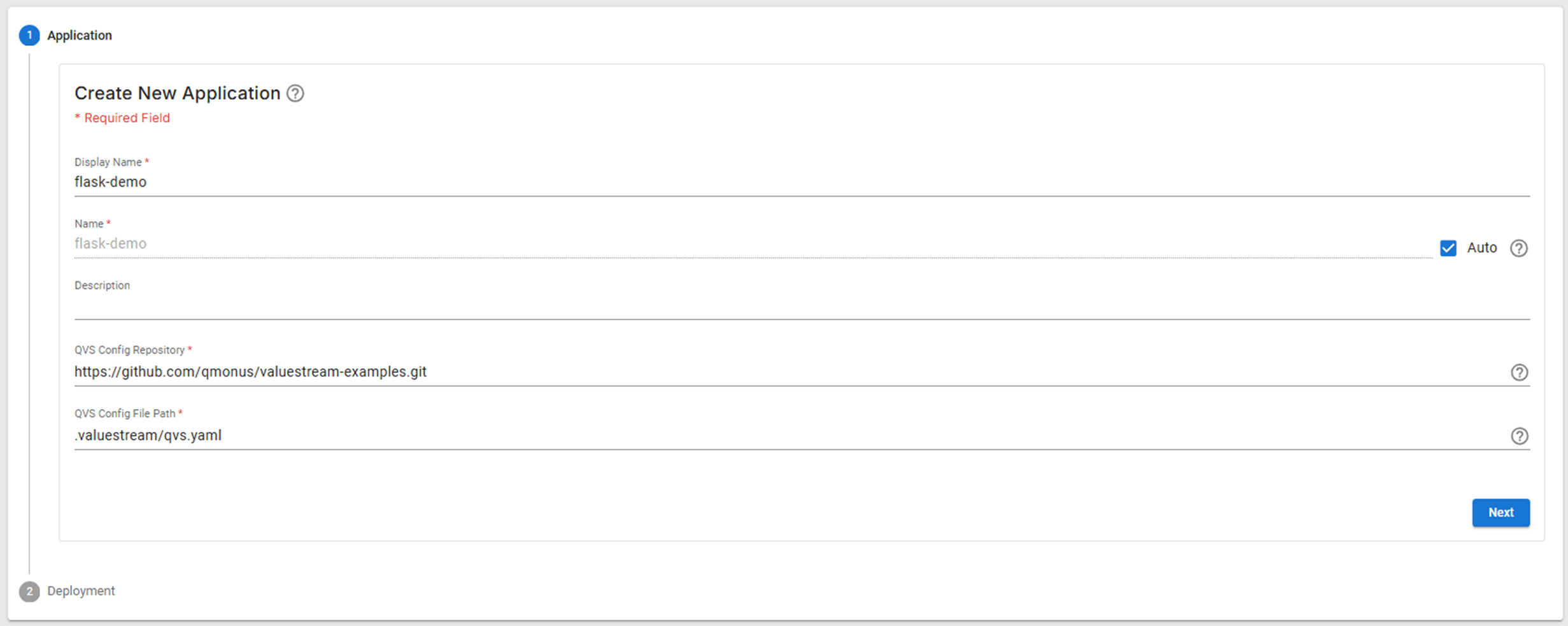 続いて今回利用するApplicationを Qmonus Value Stream に登録します。 本手順では、Repositoryの登録も併せて行います。
