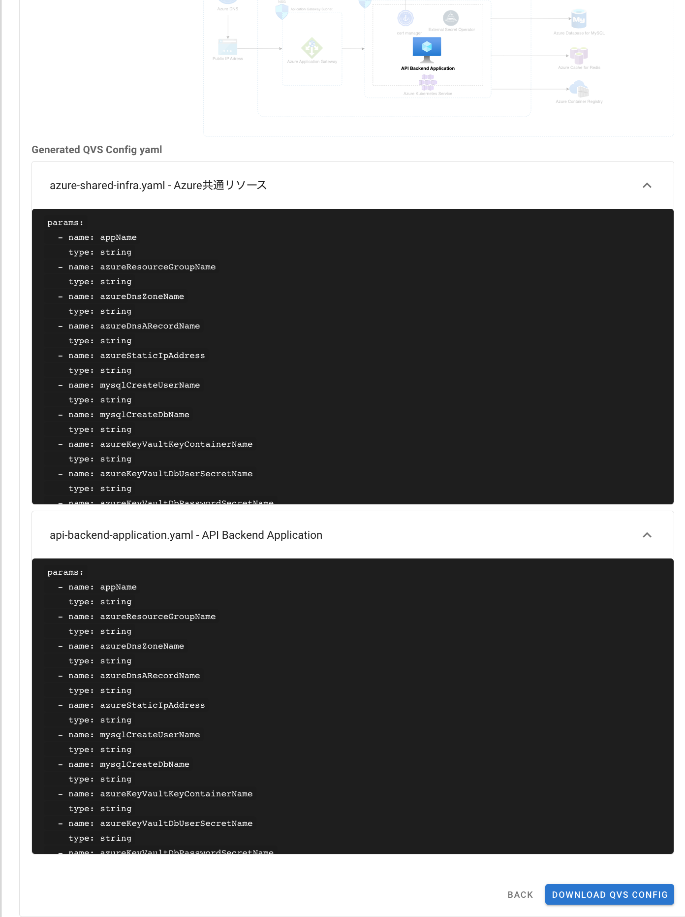 QVS Config 生成の手順は以上となります。次章で引き続き Application および Deployment を登録します。