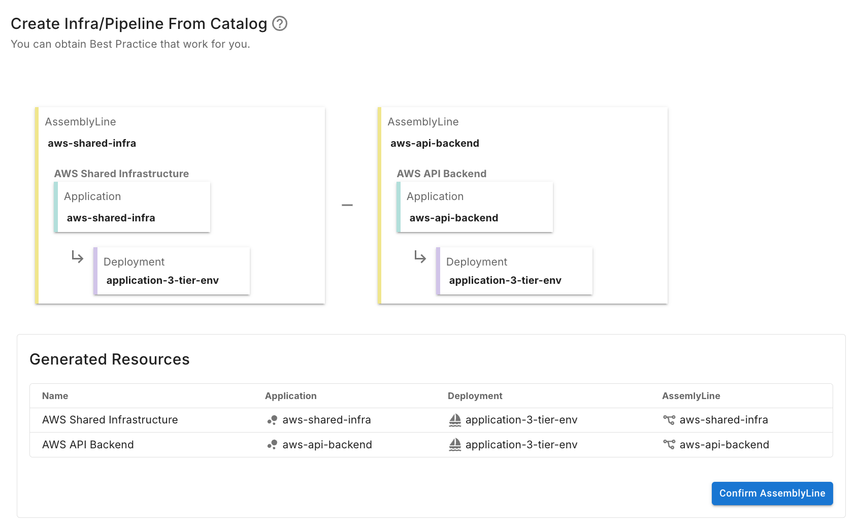登録した内容に間違いがなければ Confirm AssemblyLine ボタンをクリックし、CI/CD パイプラインの実行手順に移動します。