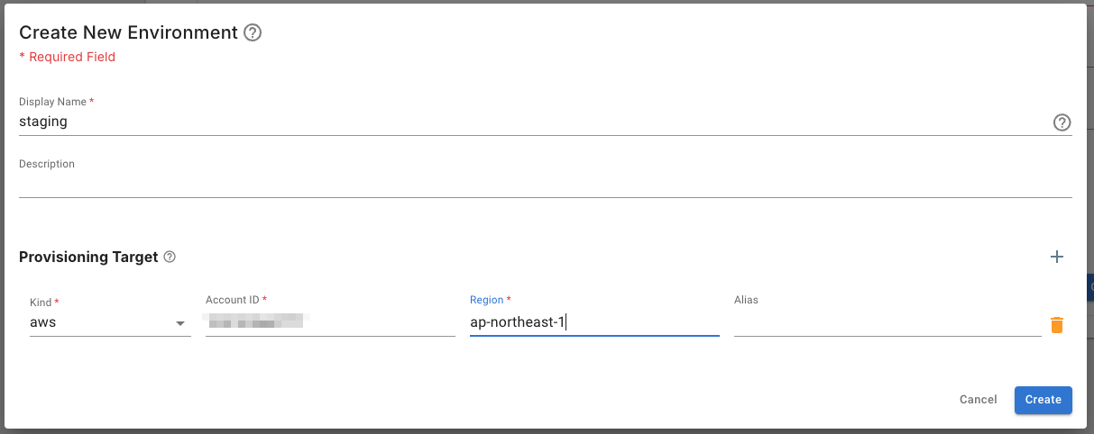 CREATEボタンを押下してEnvironmentの登録を完了します。- Display Name: